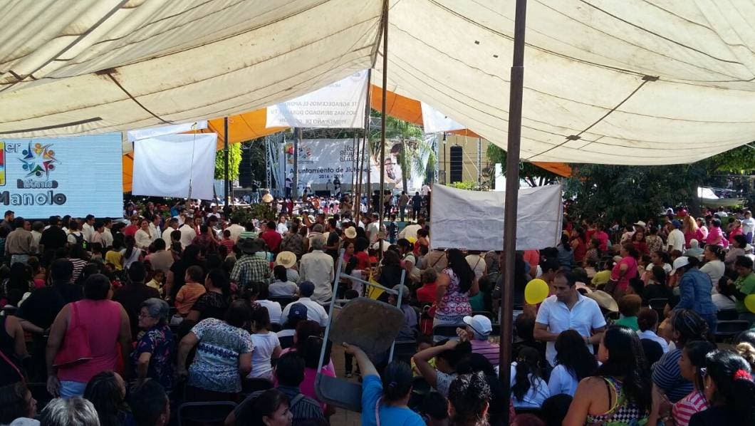 El presidente municipal de Jiutepec, José Manuel Aguero Tovar, presenta su primer informe de actividades en el Jardín Centenario, ubicado en el zócalo de este municipio.