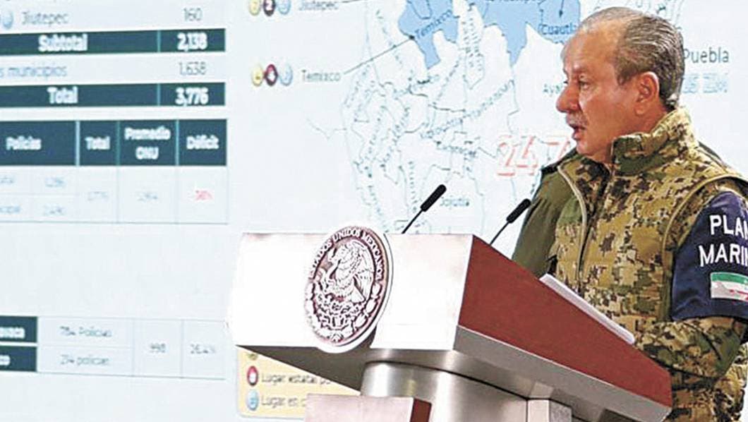 CUERNAVACA, MORELOS.- El Almirante José Rafael Ojeda Durán, titular de la Secretaría de Marina, presentó la situación de seguridad en el estado de Morelos, resaltado que la mayoría de los ilícitos presentan una disminución. Además, anunció la instalación de 15 cuarteles para la Guardia Nacional aquí.