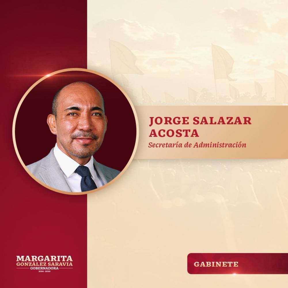 - Jorge Salazar Acosta será el Secretario de Administración, encargado de la gestión y optimización de los recursos del estado.