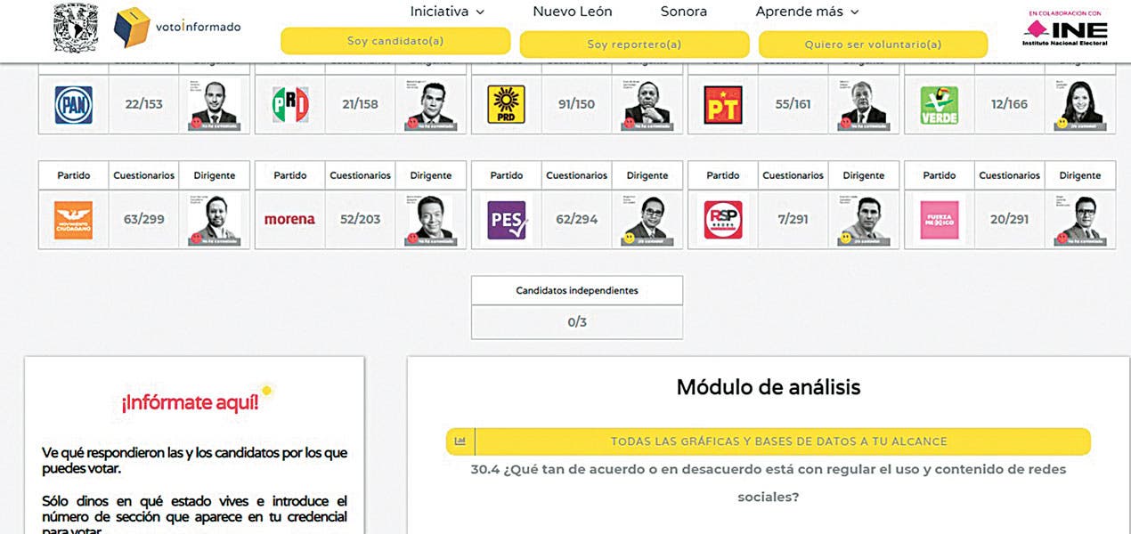 Añadió que esta herramienta, que surgió a iniciativa de la UNAM en 2015 y apoyada por el INE a partir de 2018, es un excelente puente de información para que la ciudadanía pueda preguntar lo que necesite saber, más allá de lo que se plantea en las campañas políticas.