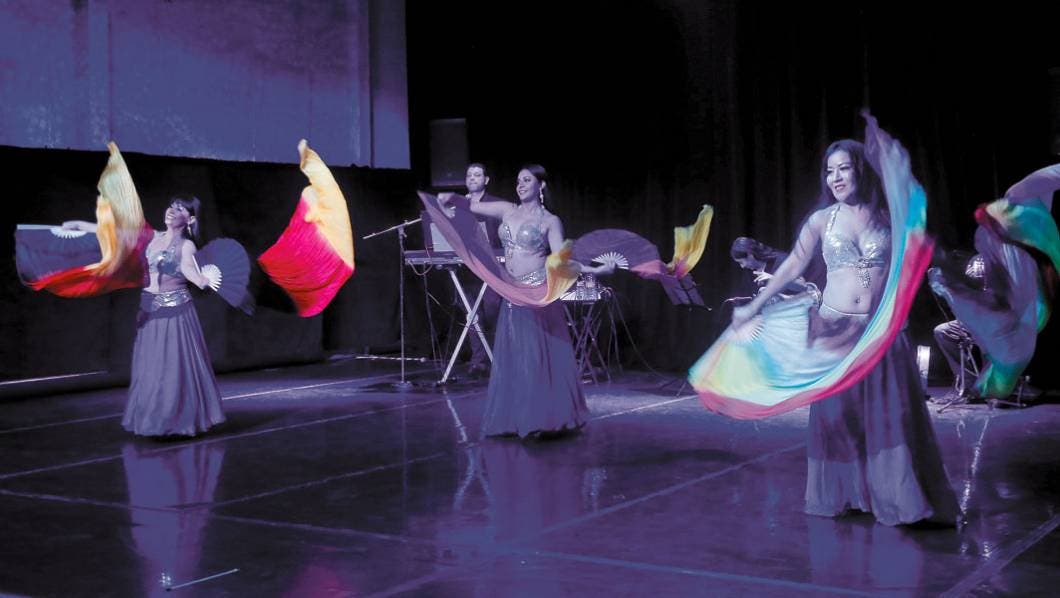 Durante el espectáculo las bailarinas mostraron diversas coreografías, en las que lucieron coloridos accesorios como pañuelos, faldas, velo y crótalos, que acompañaron los movimientos de cadera, los cuales hacen lucir este baile oriental.