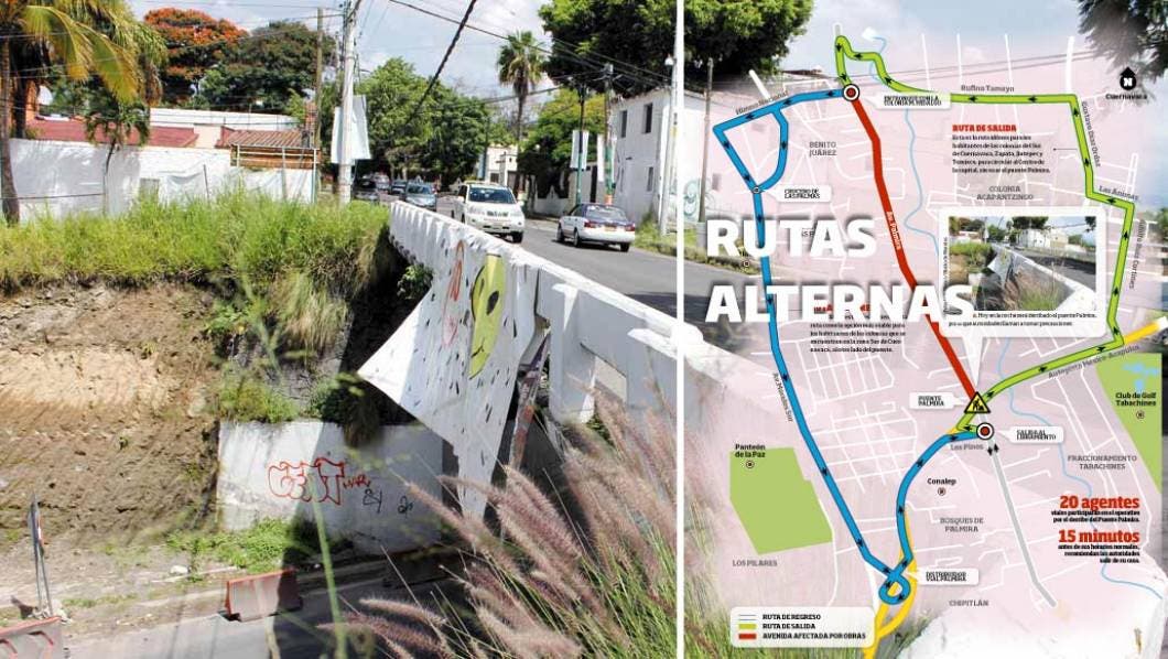 Cuernavaca, Morelos.- A partir de hoy en la noche la Secretaría de Comunicaciones y Transportes (SCT) podría comenzar los trabajos de demolición del puente Palmira por las obras del Paso Express, por lo que Diario de Morelos realizó un recorrido por las calles que se utilizarán durante un periodo de 90 días como vías alterna.