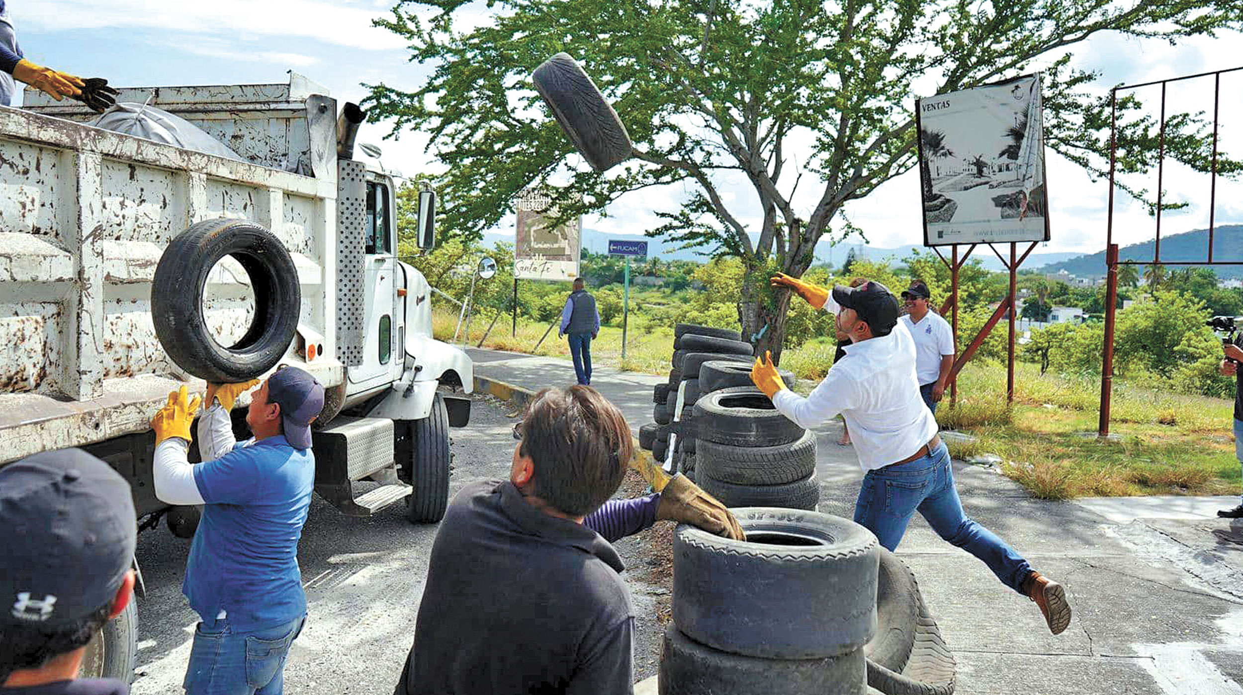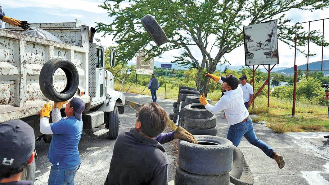 El personal del gobierno municipal, en coordinación con los ayudantes municipales, recolectaron más de cien toneladas de llantas en todo el Cerro de Las Flores, incluyendo colonias y fraccionamientos.