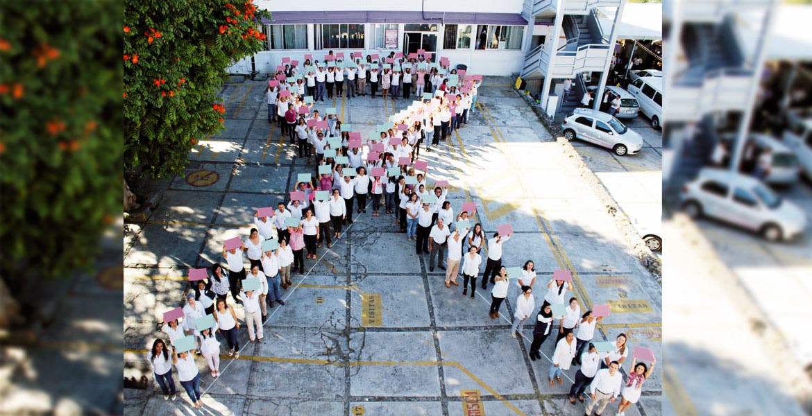 CUERNAVACA, MORELOS.- En el "Mes de lucha contra el cáncer en la mujer" y para concientizar a la población acerca de la importancia de detectar oportunamente dicho mal, personal de Servicios de Salud de Morelos (SSM) formó un "lazo humano" de color rosa y verde.
