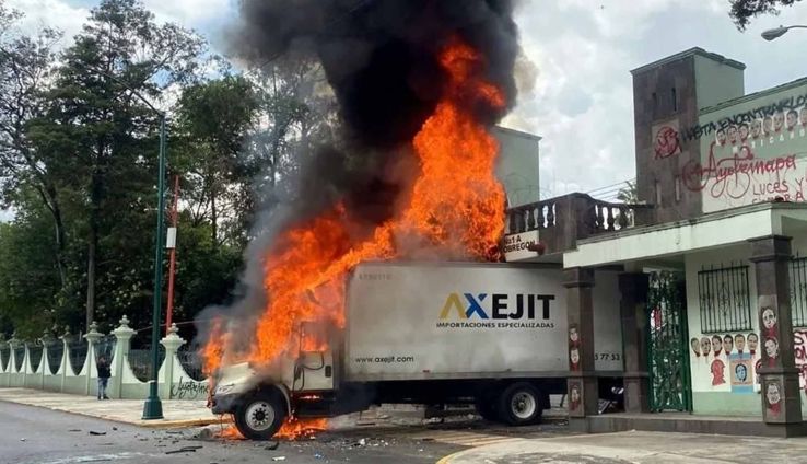 A once años de la desaparición de los 43 normalistas de Ayotzinapa, la jornada de protestas frente al Campo Militar 1-A en la alcaldía Miguel Hidalgo escaló de manera violenta, luego de que un grupo de manifestantes impactó un camión contra la puerta principal del recinto castrense, lo que derivó en una explosión e incendio que levantó una gran columna de humo visible sobre avenida Conscripto.