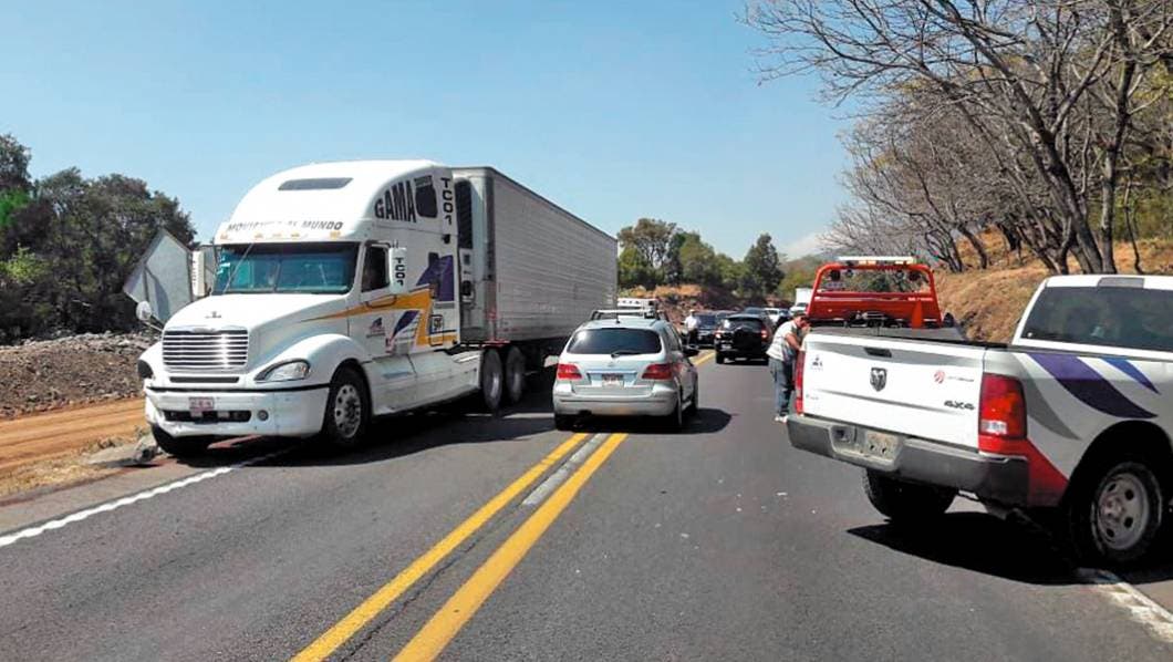 Tráfico intenso en la autopista La Pera-Cuautla, antes de llegar a la caseta de Tepoztlán, provocó el choque entre una camioneta y un tráiler.