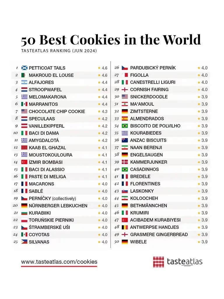 En el prestigioso ranking de Taste Atlas para el año 2024, las cinco mejores galletas del mundo son las siguientes: