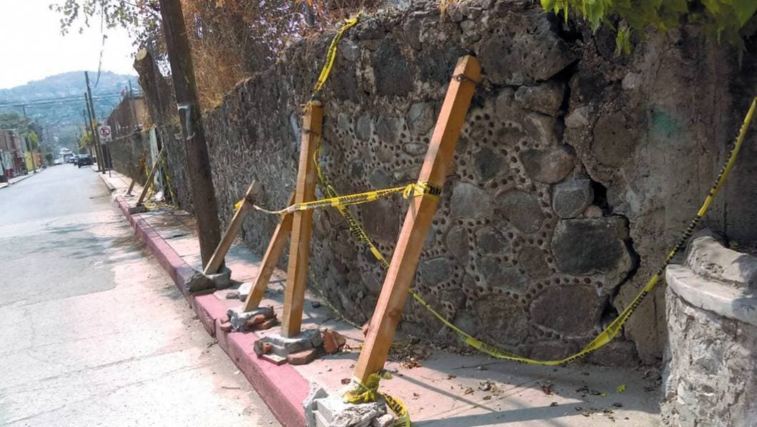 Producto del terremoto ocurrido en septiembre, así como del reblandecimiento de la estructura, una barda de piedra está a punto de colapsar en la calle Prolongación Zaragoza, en Jiutepec.