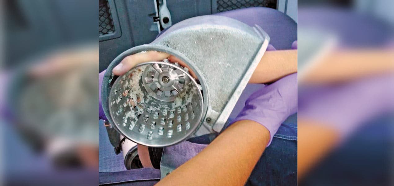 Curiosos indicaron que la joven se encontraba moliendo queso y que bastaron unos segundos de distracción para que su mano quedará prensada dentro del molino.