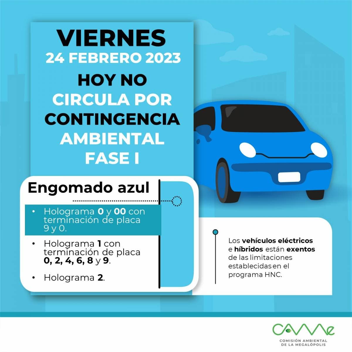-Los vehículos de uso particular con holograma de verificación “0 y 00”, engomado azul, terminación de placa 9 y 0.