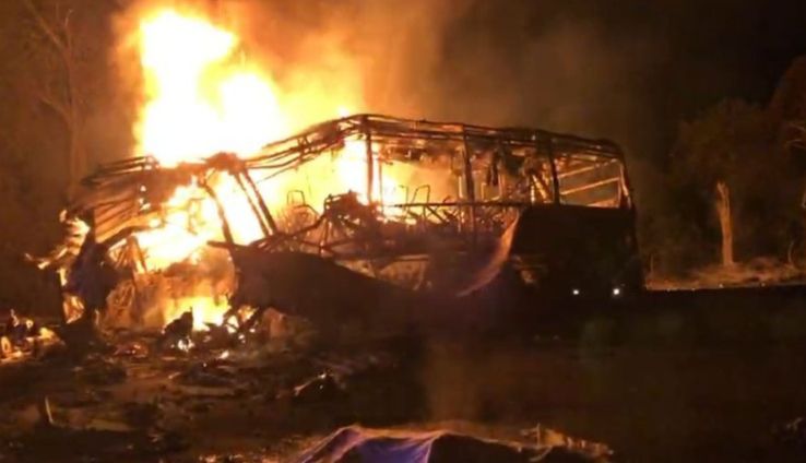 El autobús, que se dirigía a Monterrey, se impactó de frente contra el remolque que supuestamente transportaba Varsol. Este hecho provocó un incendio que calcinó al camión de pasajeros y al menos a 18 personas que viajaban en él.