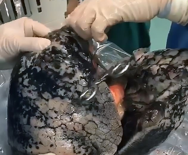 El video fue publicado por Daily Mail. Los médicos explicaron que el hombre fumó una cajetilla de cigarrillos durante 30 años. Generalmente los pulmones deben ser de un color rosa saludable, los de este hombre en cambio eran de un color carbón y estaban inflamados por décadas de residuos.