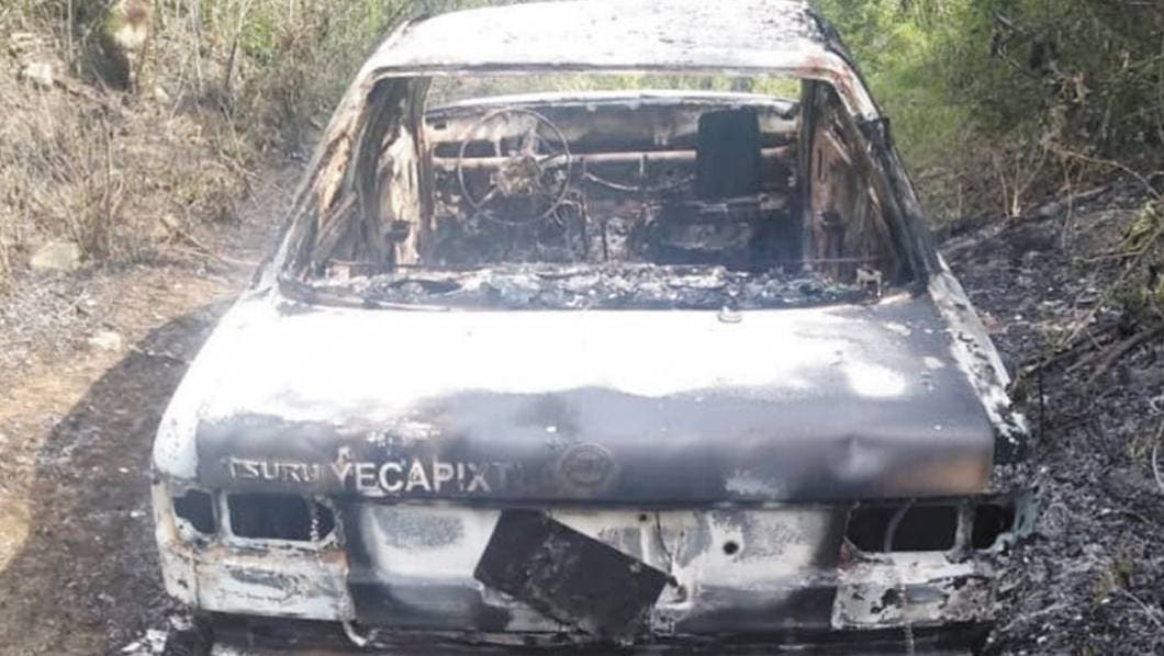 En ceniza quedó un taxi Nissan-Tsuru, sin placas, con reporte de robo del 13 de julio, tras ser quemado y abandonado en la terracería que conduce al Ranchito, en el poblado de Texcala, en Yecapixtla, por lo que fue asegurado por policías y puesto a disposición de las autoridades ministeriales.