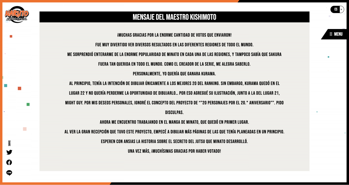 Aquí les dejamos el resultado de la encuesta y el mensaje del maestro Kishimoto: