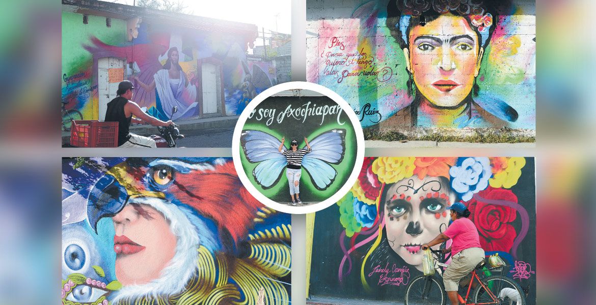 Tal vez a simple vista no se aprecien los numerosos murales que envuelven y llenan de magia y color a Axochiapan, pero una vez que los miras y te dejas atrapar por ellos, sin duda alegran la vista. En ellos podemos observar a Zapata, Frida Kahlo, Diego Rivera, Quetzalcoatl, el Tecuán, mensajes, como el famoso “amor y paz”; alas de ángel o mariposa, para la fotografía del recuerdo, hasta fachadas de casas que se han vuelto las más populares entre los habitantes.