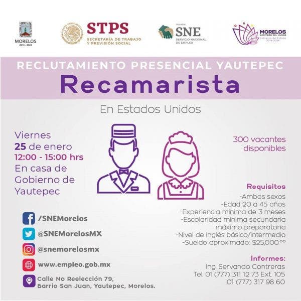 En Yautepec se abrieron vacantes para laborar en Estados Unidos como recamaristas, a través la vinculación entre el ayuntamiento y el Servicio Nacional de Empleo Morelos (SNE).