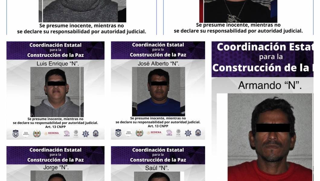 Por tal motivo se detuvo a quienes dijeron llamarse Saúl “N”, de 22 años; Armando “N”, de 34 años; Pedro “N”, de 33 años; José “N”, de 32 años; Jorge “N”, de 28 años; Luís Enrique “N”, de 25 años; y Mario “N”, de 22 años; quienes fueron puestos a disposición del Ministerio Público.