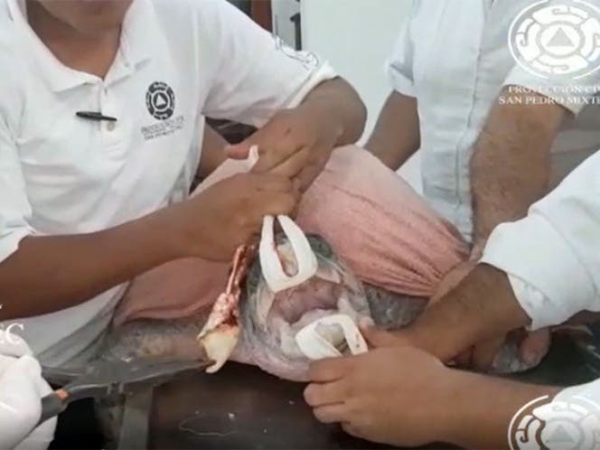 La intervención oportuna de elementos de Protección Civil de San Pedro Mixtepec, biólogos y médicos zootecnistas de la Universidad del Mar (UMAR), salvaron la vida a una tortuga golfina, a la que se le extrajo una cuchara de plástico que tenía incrustada entre la garganta y la nariz.