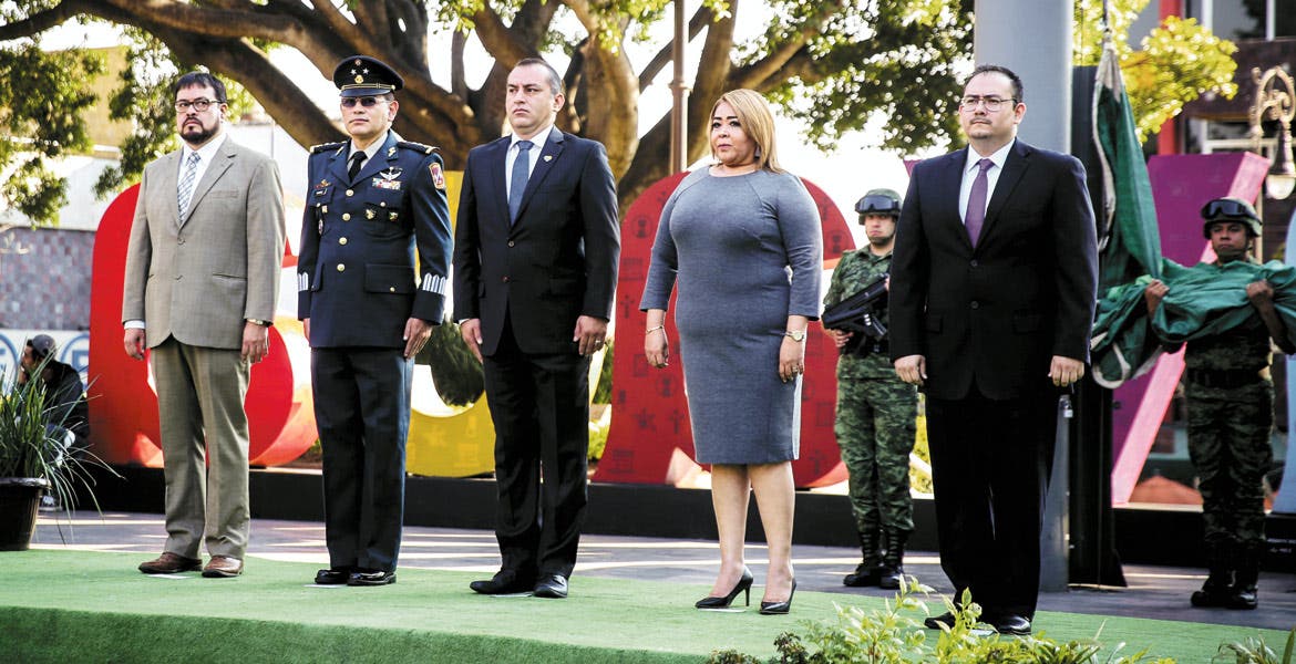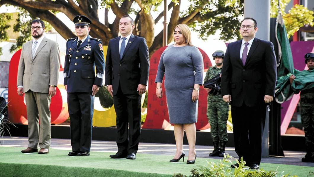 El secretario de Gobierno, Ángel Colín López fue el encargado de izar el lábaro patrio, en la Plaza de Armas "Emiliano Zapata".