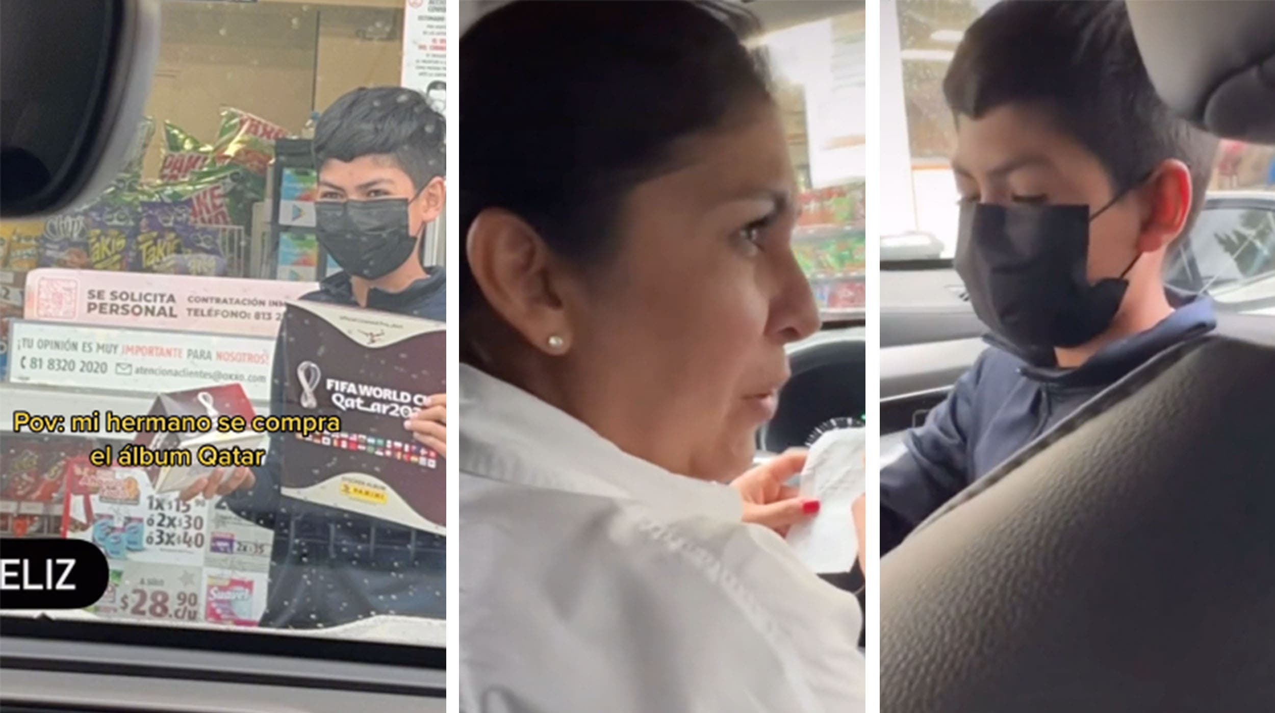 El niño se dirigió a una tienda de conveniencia, salió del lugar y felizmente llegó al coche para mostrarle el ticket de compra del álbum Panini. La mamá el ver el recibo y saber que su hijo había gastado una alta cantidad de dinero por una caja de estampas junto al álbum, se sorprendió tanto que de manera exaltada le dijo a su hijo “¿Cuánto gastaste?”. El niño le trató de amenizar el posible regaño y le mencionó a su mamá que el álbum le había costado un centavo, pero por la caja de estampas sí tuvo que pagar 1,872 pesos.