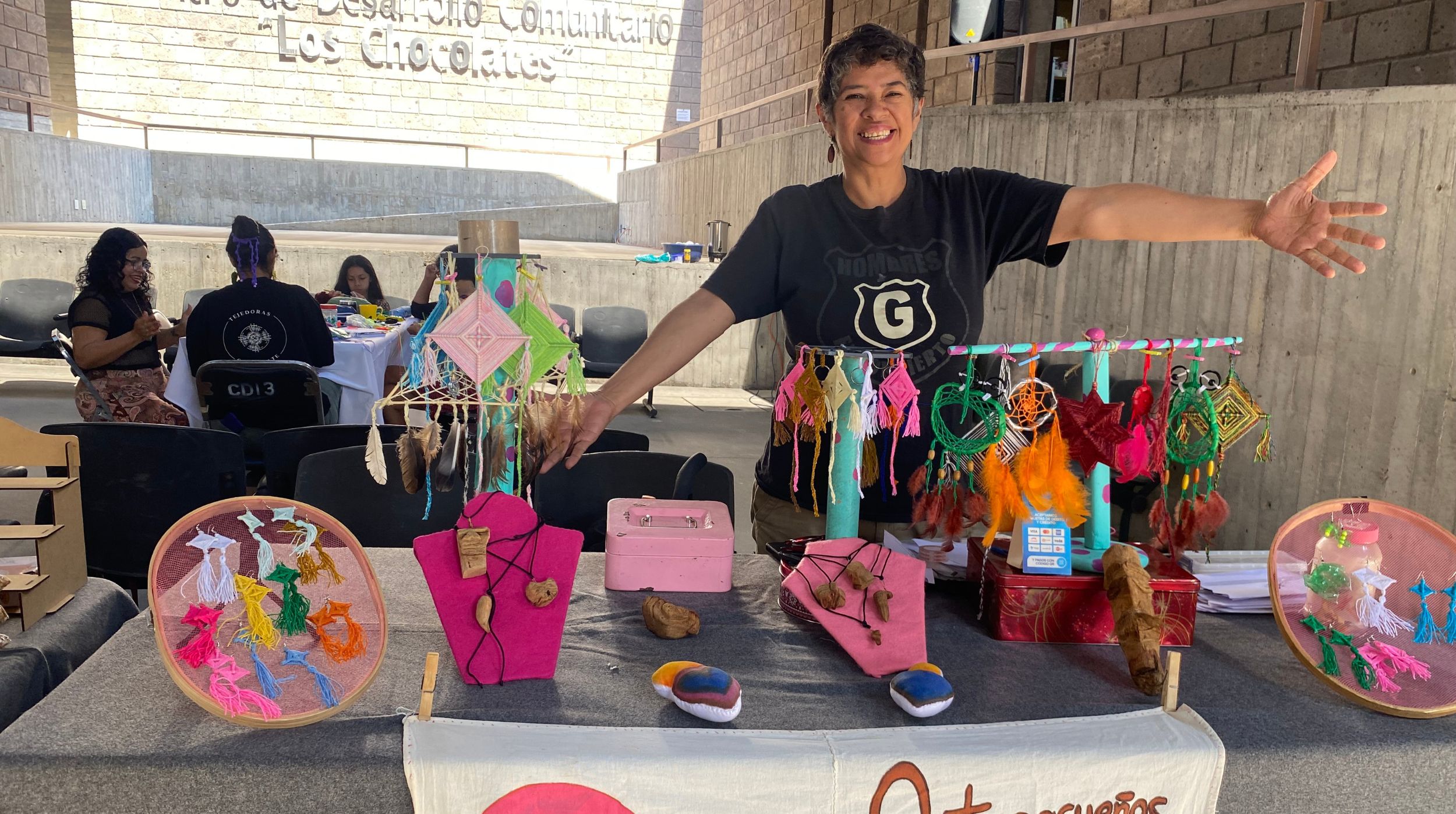 Se llevó a cabo un taller de arteterapia en el que las participantes elaboraron pulseras para regalarlas a otras mujeres, acompañadas de mensajes o consejos como una forma de fortalecer la solidaridad y el acompañamiento entre ellas.