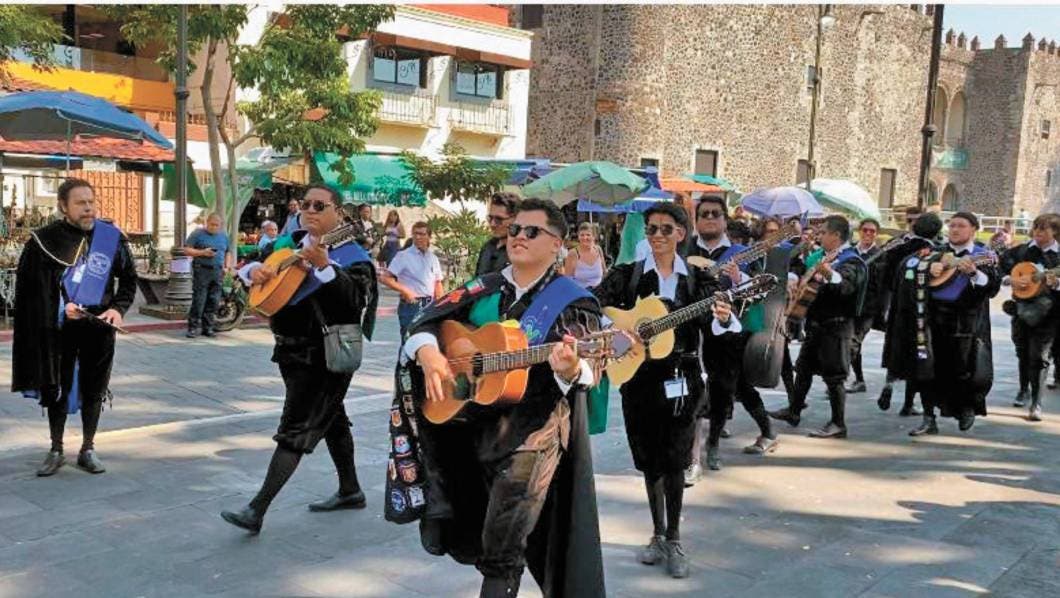 El animado recorrido comenzó en la Catedral de Cuernavaca, donde las tunas desfilaron al son de canciones populares, serenatas y piezas folclóricas, mientras la gente cantaba y bailaba al ritmo de las guitarras, laúdes, panderetas y otros instrumentos.