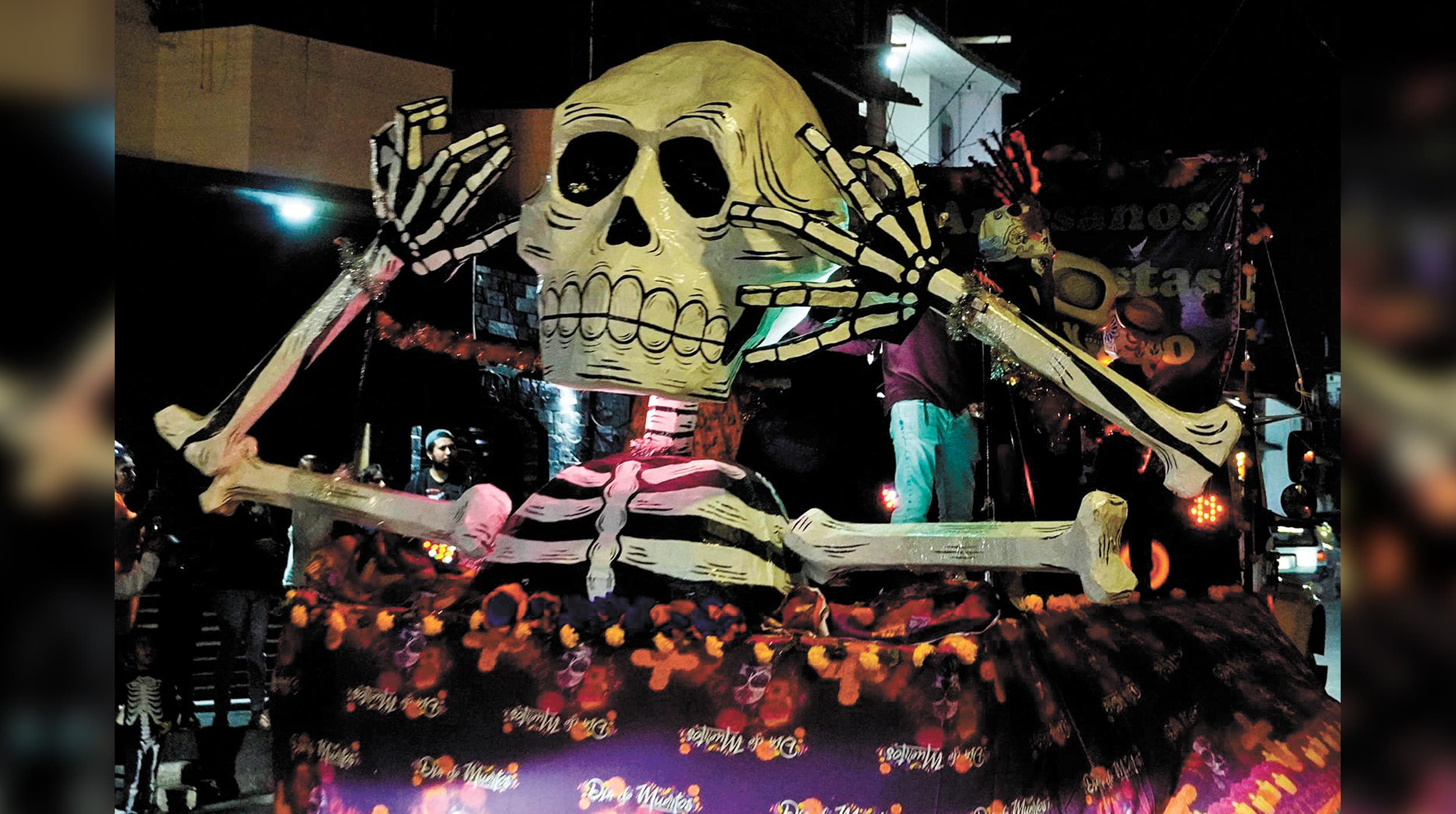 El recorrido inició en la comunidad de Tetecalita y culminó en la colonia Tres de Mayo, donde familias completas se reunieron para disfrutar del paso de los carros decorados con motivos alusivos al Día de Muertos, acompañados por una banda de viento que amenizó el ambiente.