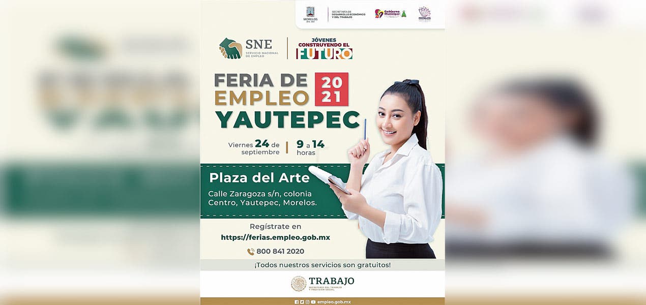 Jorge Mario García Ávila, director general del SNE, invitó a la población que busca empleo, a darse cita hoy viernes 24 de septiembre del presente año, en las instalaciones de la Plaza del Arte de Yautepec, ubicada en calle Zaragoza sin número, colonia Centro, donde se prevé la participación de más de 20 empresas, mismas que en su conjunto ofertarán cerca de 300 plazas laborales para la población asistente.