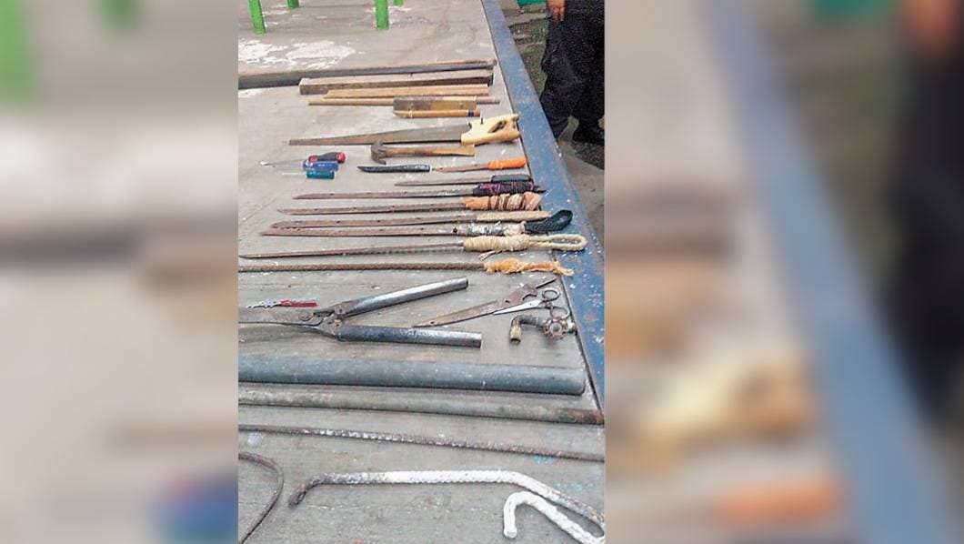 Xochitepec, MORELOS.- Navajas, tijeras y tubos, fueron asegurados durante un operativo realizado por policías estatales en el penal de Atlacholoaya, en Xochitepec.