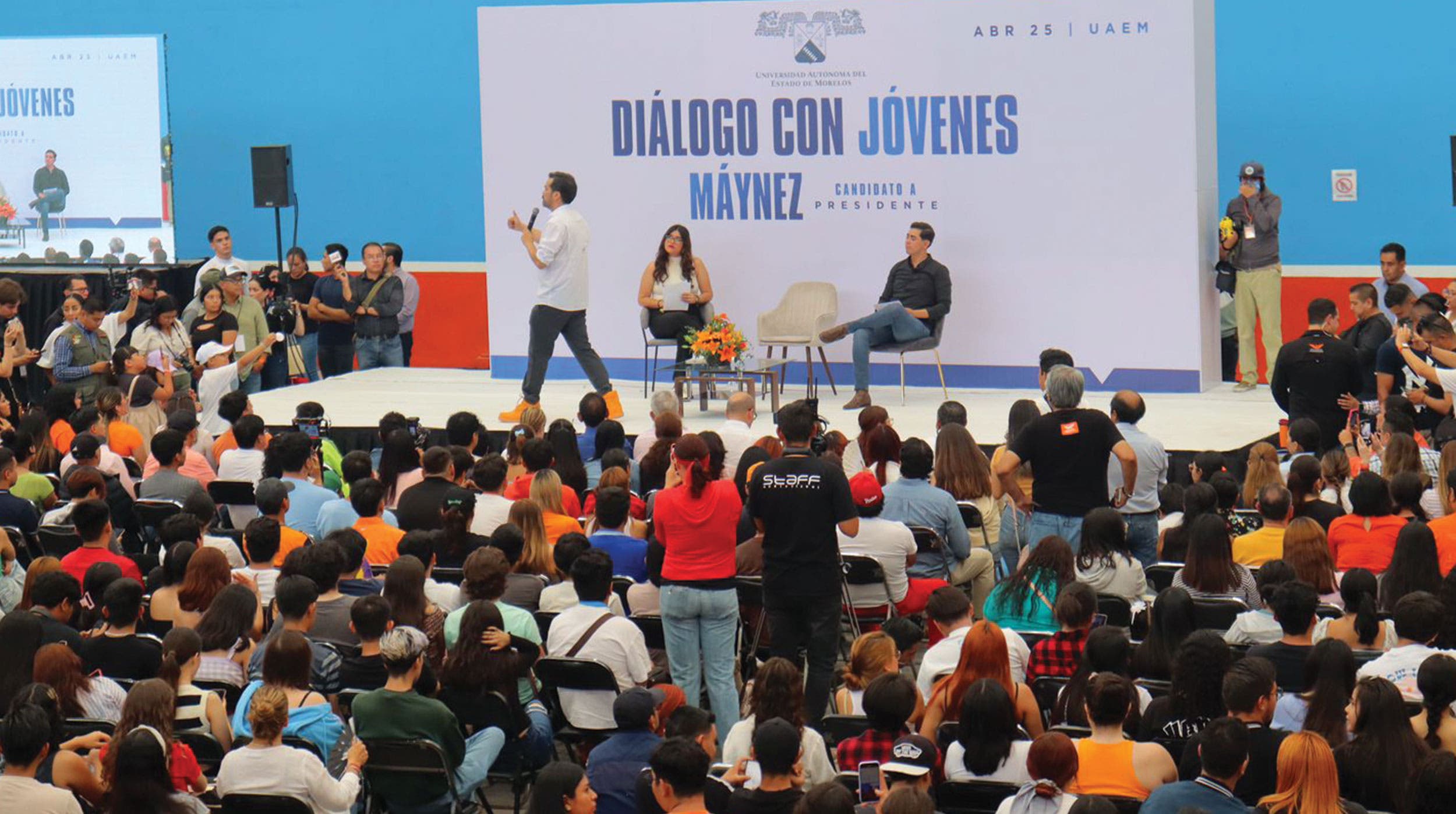 Ayer, los alumnos de diferentes facultades y escuelas de la Universidad Autónoma del Estado de Morelos (UAEM) abarrotaron el Polideportivo para conocer, convivir y escuchar el mensaje de Jorge Álvarez Máynez, candidato de Movimiento Ciudadano a la Presidencia de la República, quien, como a muchos universitarios en el país, les ofreció un gobierno incluyente y una transformación del sistema educativo, con énfasis en el nivel superior, y la creación del bono cultural.