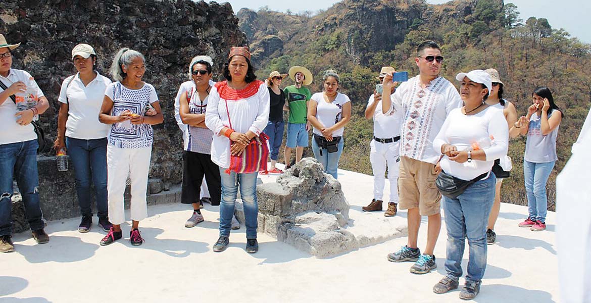 Ataviados de blanco, los visitantes escalaron el Cerro de El Tepozteco para contemplar el paisaje y recibir la energía.