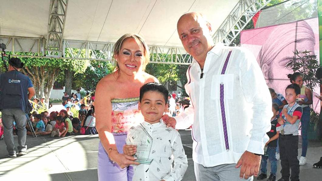 El alcalde de Cuautla, Rodrigo Arredondo y su esposa Araceli García reconocieron a niños destacados.