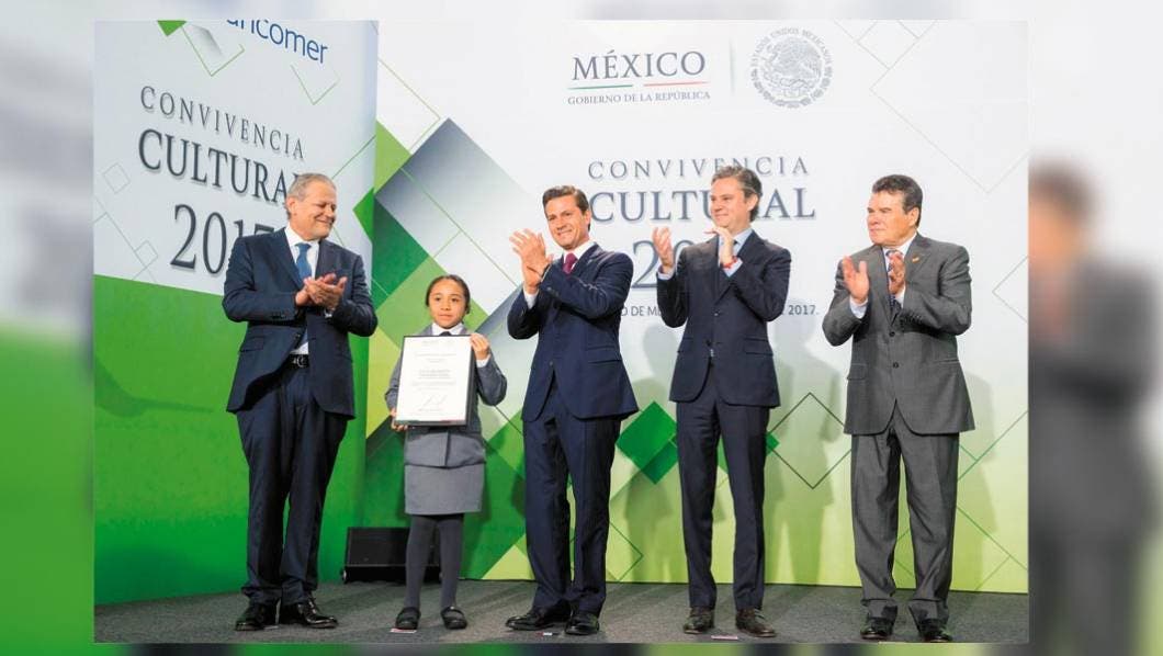 En la Explanada Francisco I. Madero, de la Residencia Oficial de Los Pinos, el presidente entregó el reconocimiento a Lucía González López, alumna de la escuela primaria Justo Sierra, de tiempo completo, de tipo rural, ubicada en Huitchila, Tepalcingo, ganadora estatal de la Olimpiada del Conocimiento 2017.