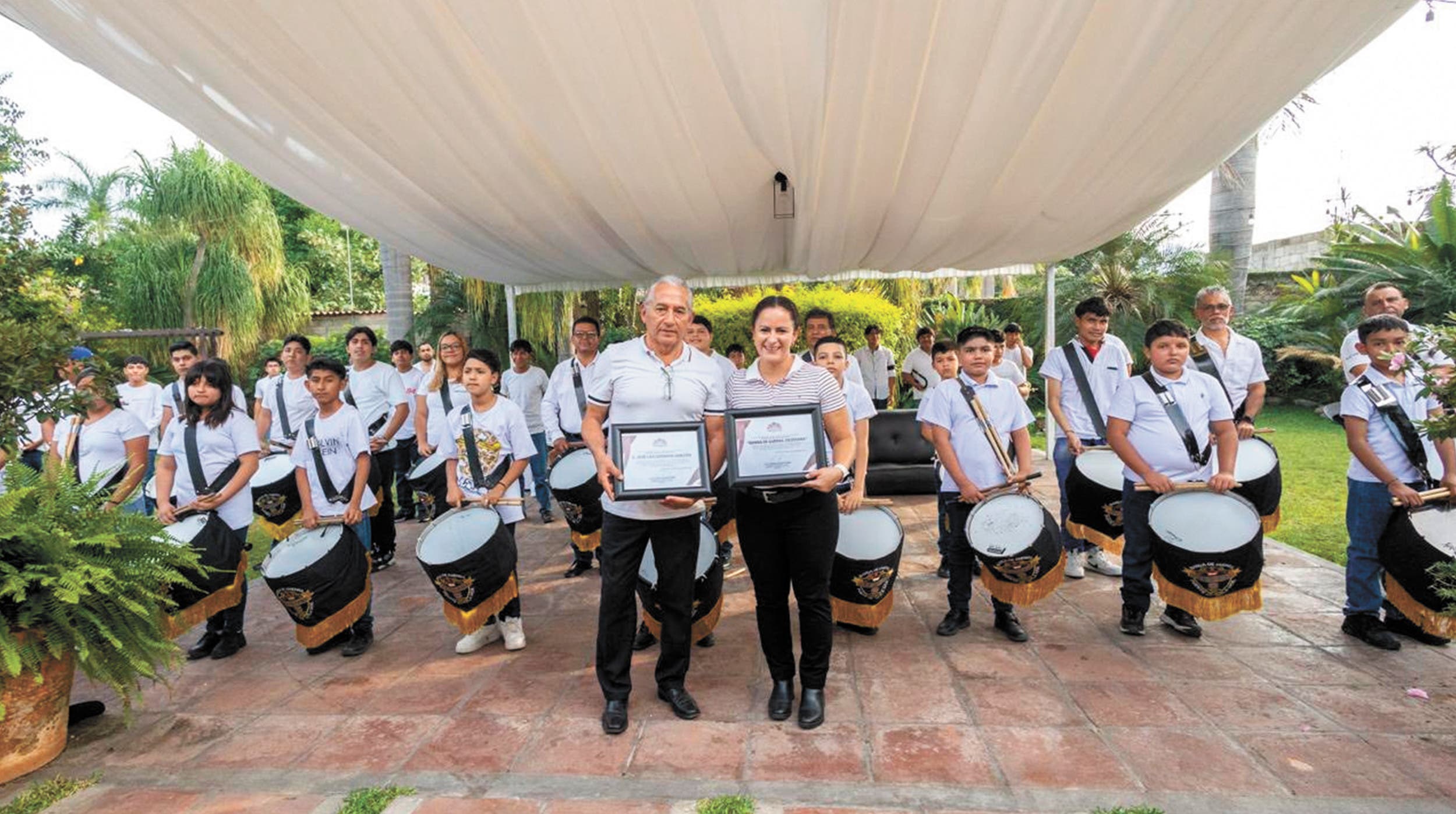 La alcaldesa de Puente de Ixtla, Claudia Mazari Torres, encabezó el reconocimiento por los 40 años de trayectoria de la Banda de Guerra Obsidiana, un grupo que a lo largo de cuatro décadas ha destacado por su disciplina, compromiso y dedicación al servicio de la comunidad ixtleca.