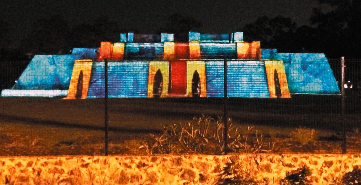 El Gobernador Graco Ramírez y su esposa, Elena Cepeda, acuden a entrega de Premios a Iconos del Diseño; junto con personalidades de la sociedad morelense. Aquí frente a la pirámide de Teopanzolco, iluminada por juego de luces
