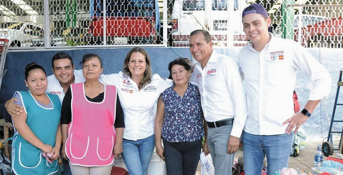 Los candidatos de la alianza formada por Morena-PES-PT, Chris Bargagli, Marisol Becerra, Pepe Casas y Alejandro Mojica recorrieron el tianguis de la colonia Satélite para platicar con las y los ciudadanos que cada semana acuden a vender y comprar diversos productos.