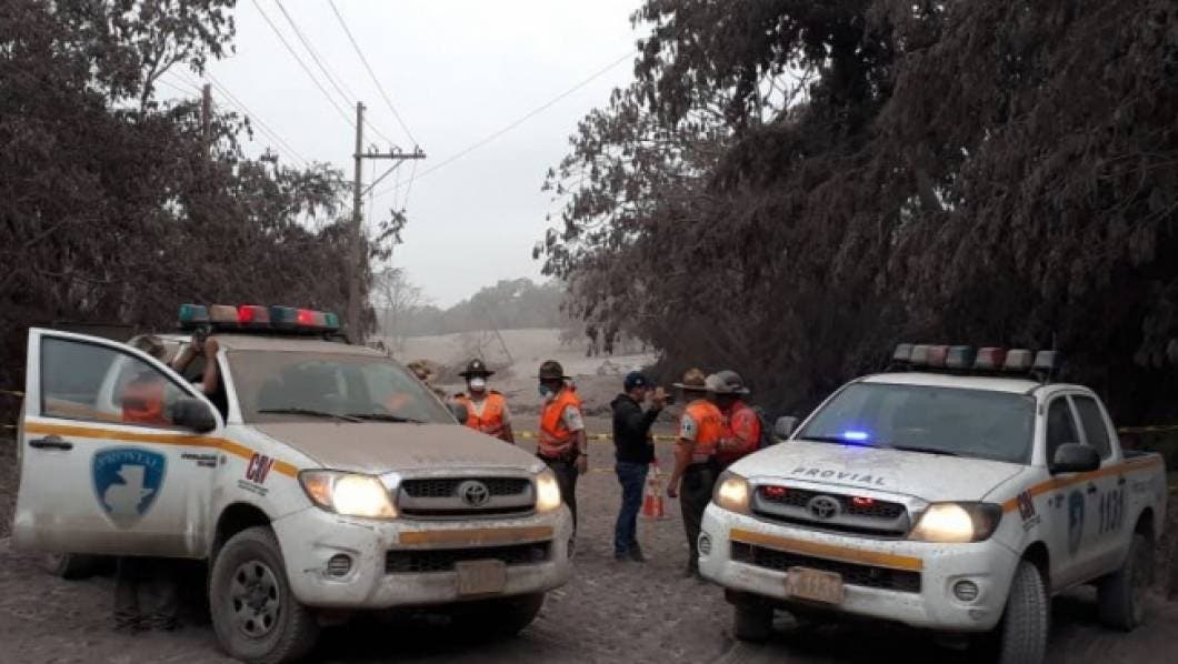 En las labores de rescate en comunidades arrasadas por correntadas de material incandescente en las faldas del coloso participan socorristas de Bomberos Voluntarios y Bomberos Municipales, de la Coordinadora Nacional para la Reducción de Desastres (Conred), Policía Nacional Civil, Ejército, ministerios de Salud, Gobernación, además de decenas de voluntarios.