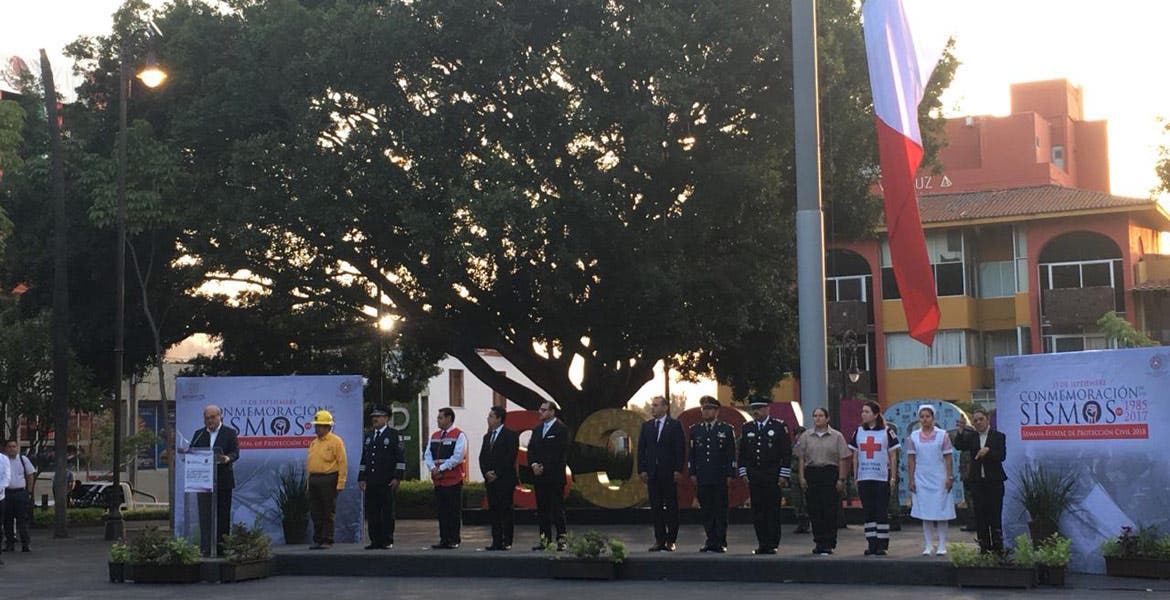 En un acto solemne en Plaza de Armas, el Gobernador Graco Ramírez aseguró esta mañana que "hoy izamos la bandera a media asta porque recordamos dos momentos en la historia de Morelos y México que nos marcaron como sociedad. Recordamos los sismos del 19 de septiembre.
