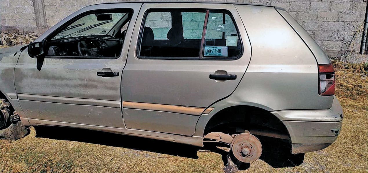 Jiutepec.- Completamente desvalijado y sobre un par de piedras, fue dejado un vehículo Golf color gris en un camino de terracería de la colonia Hacienda Las Flores. La unidad fue robada la noche del 30 de diciembre en la colonia Tetecolala.