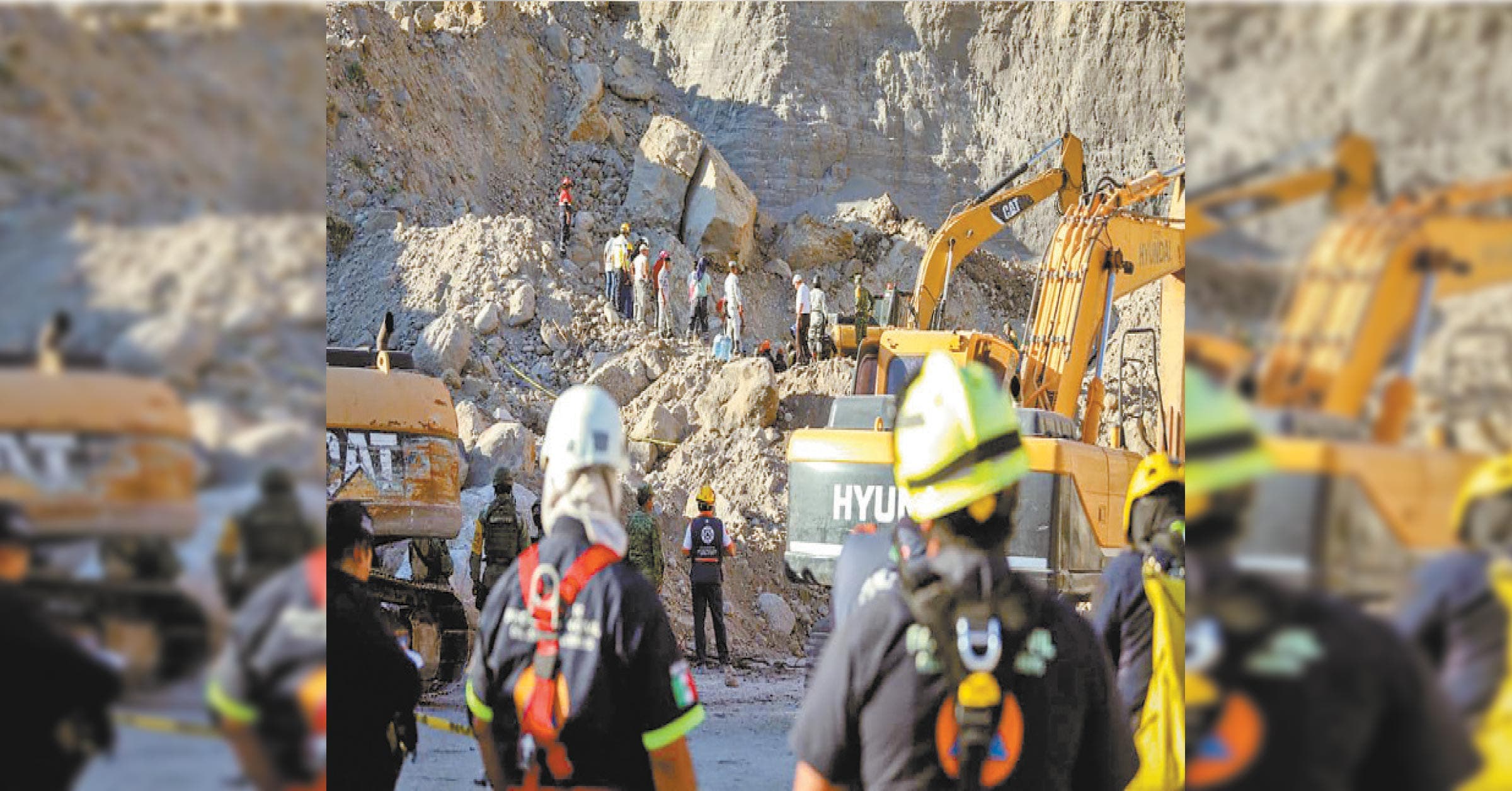 El paredón había colapsado sobre una excavadora y un camión de volteo, donde al menos dos trabajadores habían quedado atrapados.