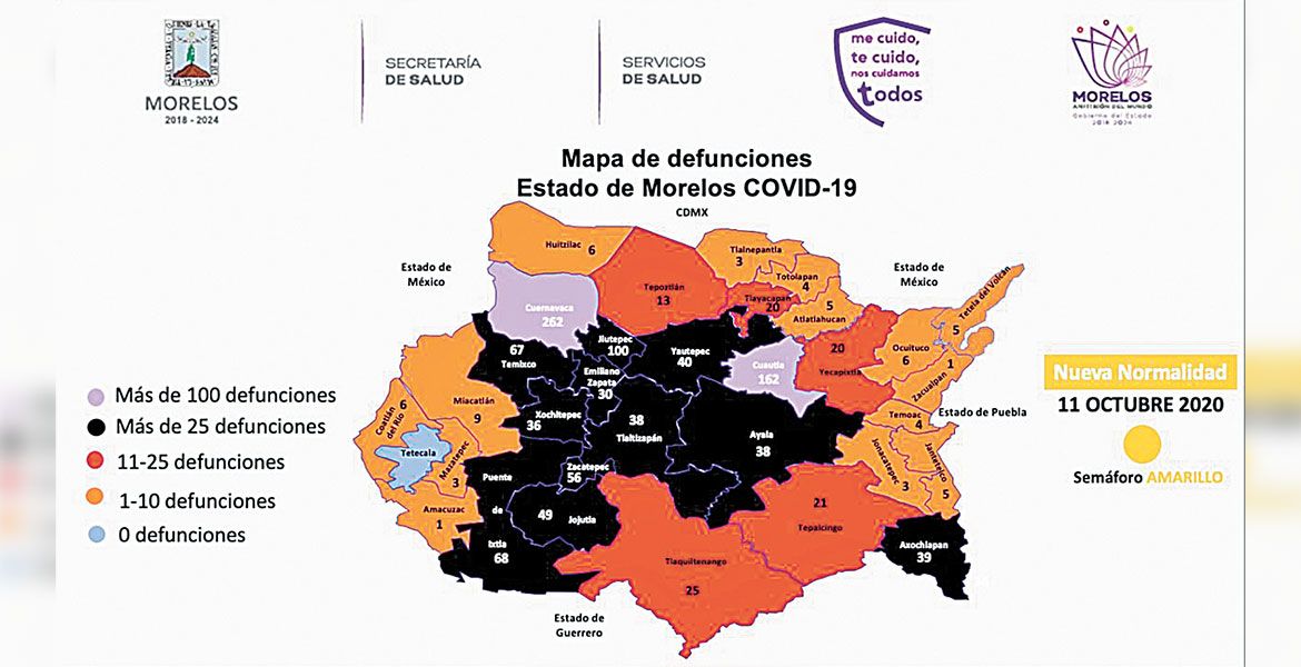 En tanto, las nuevas defunciones se registraron en 2 féminas de Cuernavaca y Jiutepec que padecían diabetes mellitus e hipertensión arterial; además de 4 hombres de Cuernavaca que presentaban hipertensión arterial, obesidad y tabaquismo.