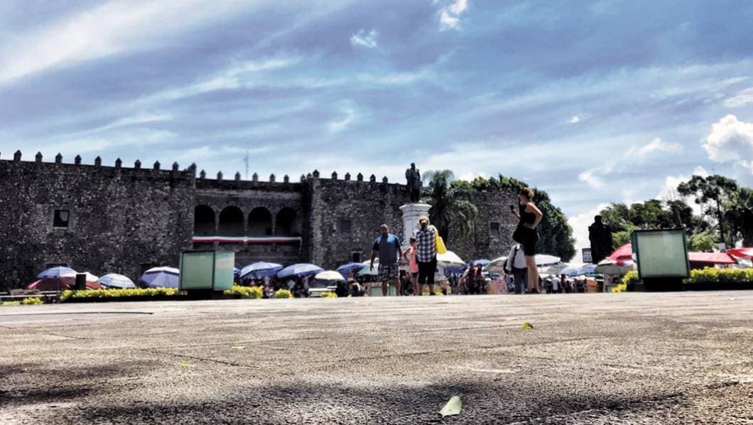 El edificio Bellavista, frente al Jardín Juárez, permanece con una cinta de seguridad; sin embargo, su entrada principal está abierta al público. Arriba, la foto del Palacio de Cortés donde el tianguis de artesanos funciona de manera normal en la venta de sus productos.