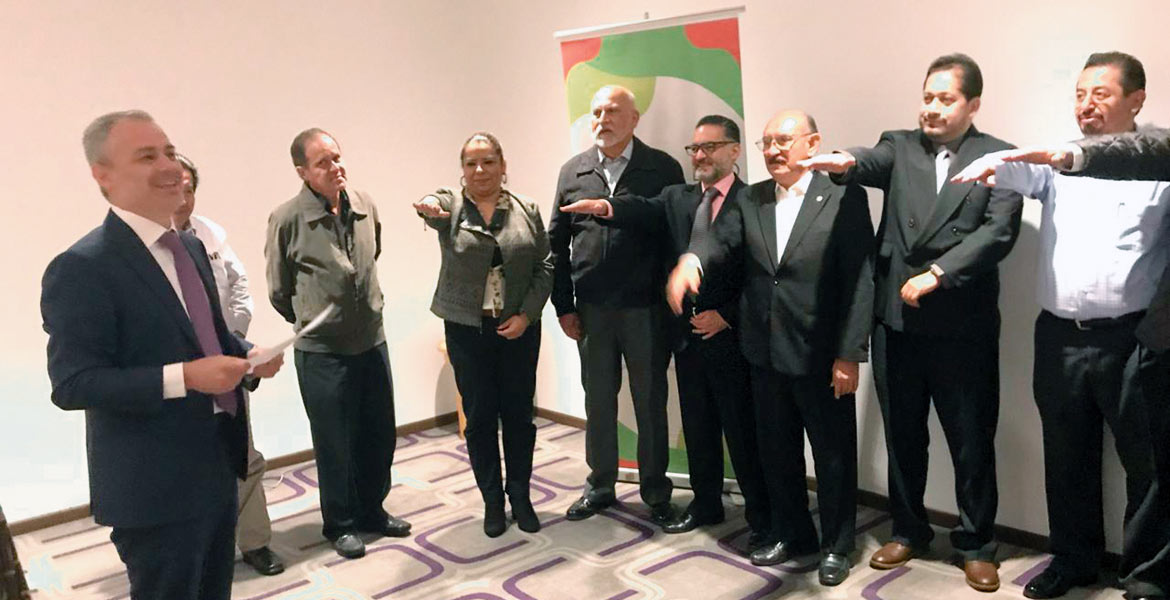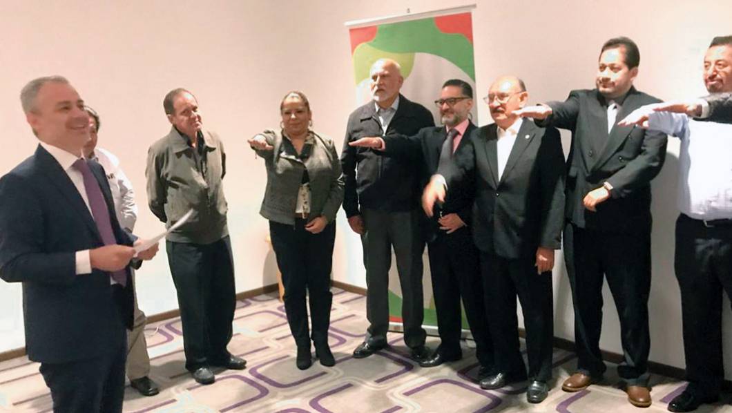 Jorge Mátar, presidente de Canacintra, acompaña a Ángel Adame como vicepresidente ejecutivo, y Guillermo Salgado, de la Asociación Mexicana de Profesionales Inmobiliarios (AMPI), como tesorero.