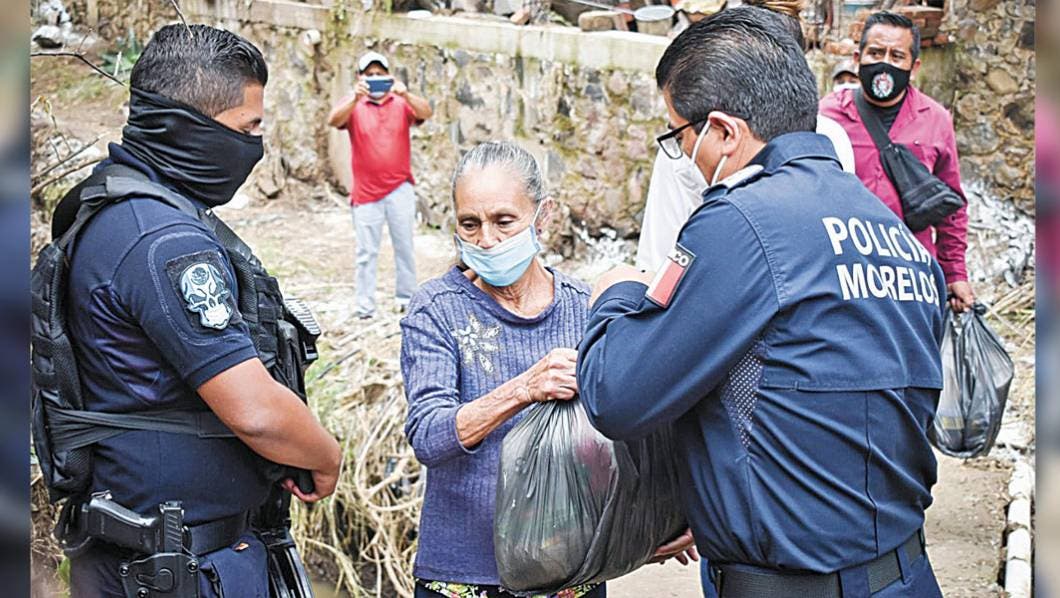 Tlayacapan.- La Comisión Estatal de Seguridad Pública (CES Morelos) hizo la entrega de despensas, agua y ropa a familiares de una fémina elemento del Mando Coordinado, que resultaron afectados por las lluvias en días pasados, en el municipio de Tlayacapan.