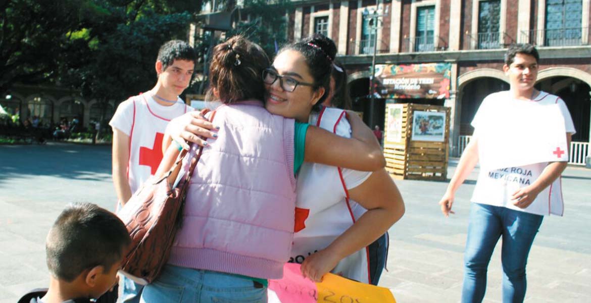 La Escuela de Técnicos de Urgencias Médicas de la Cruz Roja repartieron ayer abrazos y besos en la Plaza de Armas. Lo anterior, con el objetivo de brindar cariño y sensibilizar a las personas en estas fechas, pues algunas pasarán las festividades en soledad.