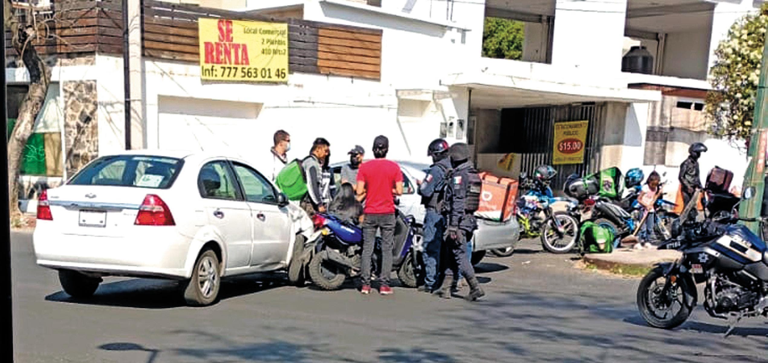 Cuernavaca.- Con varios golpes en el cuerpo y pequeños raspones terminó un repartidor de comida tras impactarse de frente contra un vehículo Chevrolet en la esquina de la avenida Río Mayo y Chilpancingo de la colonia Vista Hermosa.