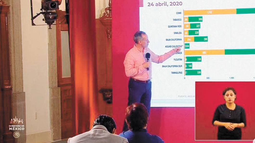 El subsecretario de Salud, Hugo López-Gatell Ramírez mostró la RED IRAG (infección respiratoria aguda grave), en el que se muestra a los 610 hospitales que notificaron el número de casos compatibles con neumonía, causado por diversas infecciones, entre ellas, el virus Sars COV 2.