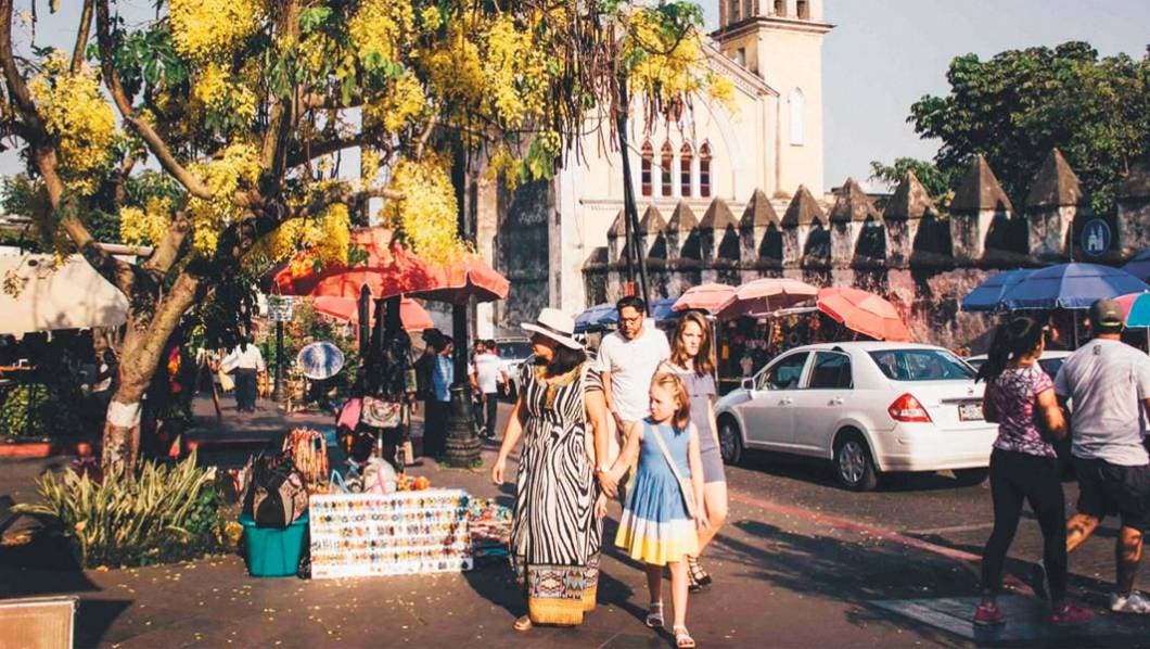 Segunda. Al inicio de esta segunda semana de vacaciones, la presencia de turismo nacional y extranjero era notoria en el centro de Cuernavaca.