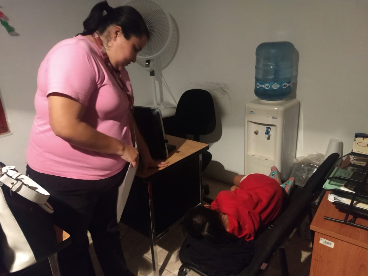 A las 21:20 horas, la delegada de la PPNNAYF, M.D Carmen Velázquez López, junto con la asesor jurídico, Lic. Delia Ana de Lourdes Pozo y la psicóloga, Karina Yeizi Fitz Canales, se constituyeron con el juez cívico para recibir en resguardo a la niña que en todo momento dijo padecer maltrato de su madre, señalando que le pega con ganchos, con la chancla, el cinturón y el cable de la luz; es por ello que decidió salirse de su casa para irse a vivir con su abuelita "Mago".