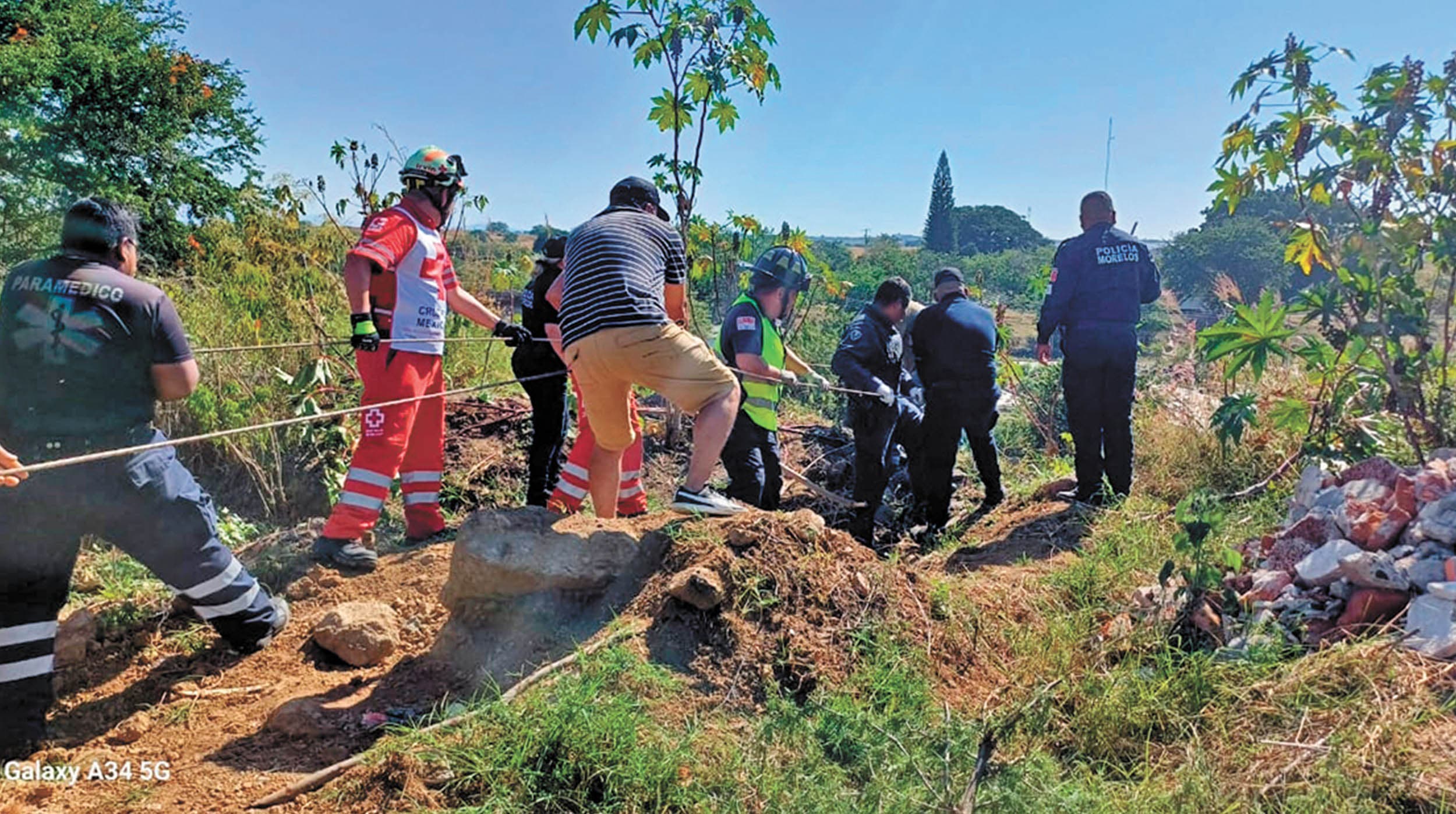 Con ayuda de cuerdas, los socorristas lograron llegar hasta donde estaba el afectado, el cual fue trasladado después por la Cruz Roja al Hospital General de Cuautla.